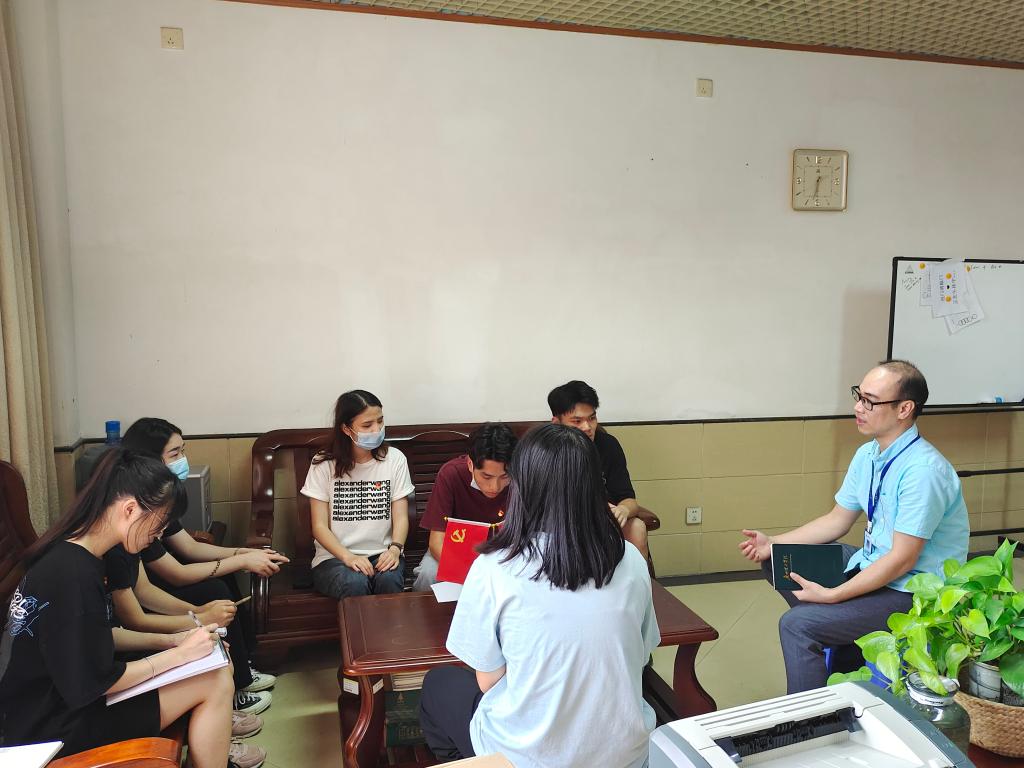首先,颜冬果老师结合学生党支部委员们的工作情况,带领支部委员们学习贯彻习近平总书记在庆祝中国共产党成立100周年大会上的讲话精神,要求他们学懂学透,不断提高党性修养。