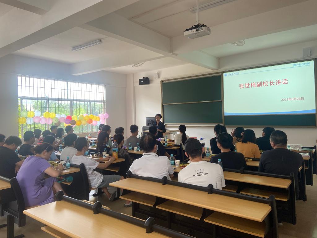 会上,张世梅副校长代表学校对新入职的教师表示热烈的欢迎,从学校地理位置、教育教学情况、学校理念等方面向各位新教师介绍了学校各方面的基本情况。勉励各位新教师不断提升自己、做好职业规划、做好角色转变、树立良好形象、坚持教师准则,不断学习、快速成长。希望全体教职工一要牢记“为党育人、为国育才”初心和使命,用习近平新时代中国特色社会主义思想铸魂育人,恪尽职守、担当作为,敬业乐群、不断进步;二要践行“学高为师、身正为范”的德操和风范,严格要求自己、不断完善自己,努力做“四有”好老师,做学生锤炼品格、学习知识、创新思维、奉献祖国的引路人;三要树立“安心从教、热心从教”的理念和信心,明确个人发展目标,做好职业生涯规划,在服务学院发展的同时积极提升自我,更好实现自我价值。