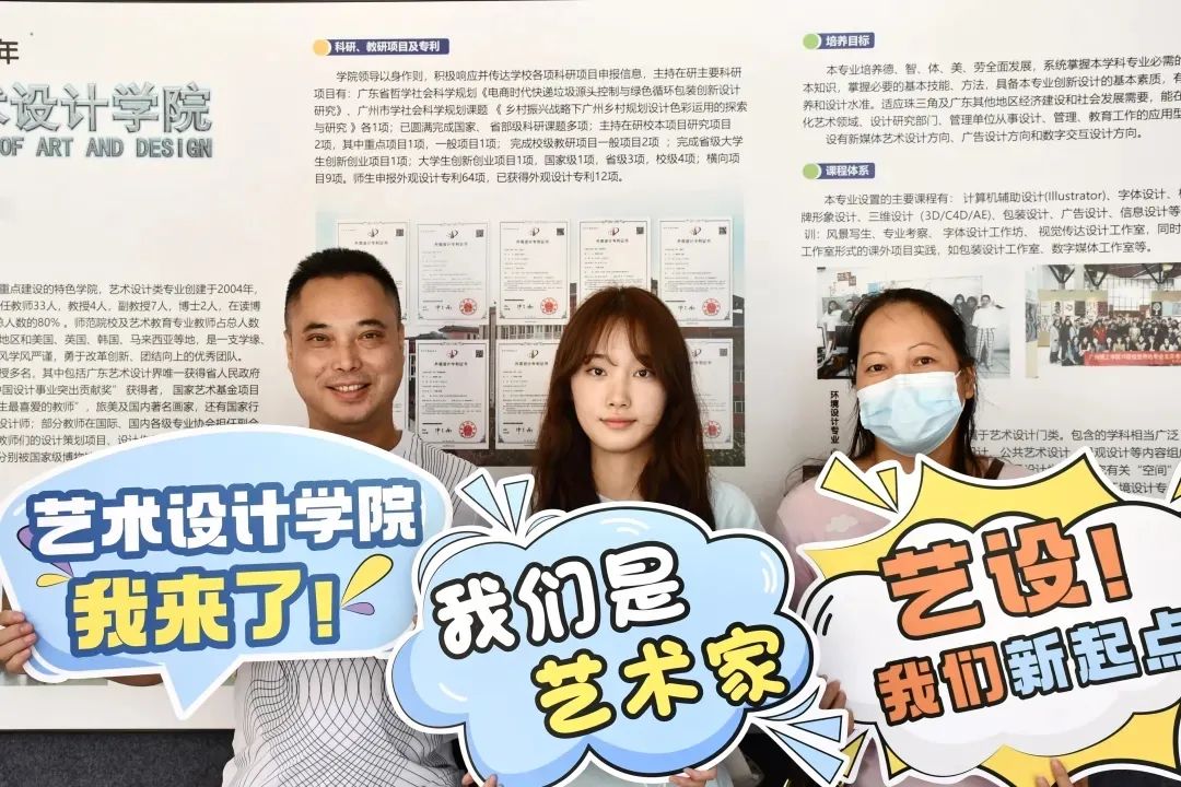 新生和家长一起在报到处合影