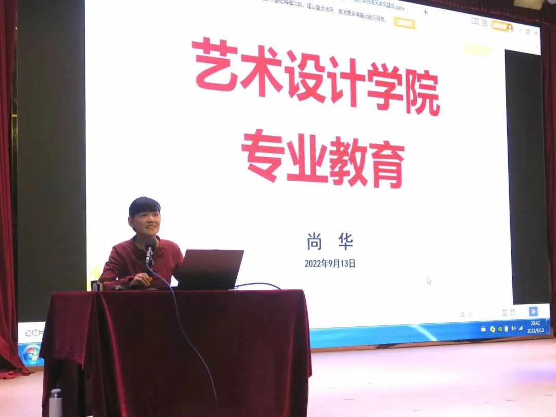 尚华院长为全体新生介绍了suncitygroup太阳新城的沿革与积淀、专业设置、教师队伍、学生规模和品牌工作室,让新生们更加全面深入了解了suncitygroup太阳新城,随后以粤港澳大湾区的代表性设计作品为例,展开阐述与分析,提出艺术设计专业前景与展望:“中国亟需世界一流的设计!向世界推出独具东方美学神韵的现代设计是中国设计界的历史责任!”她表示粤港澳大湾区是现代设计师大展拳脚的极好舞台,鼓励同学们要不断提高艺术素养、美学眼界和人文底蕴。