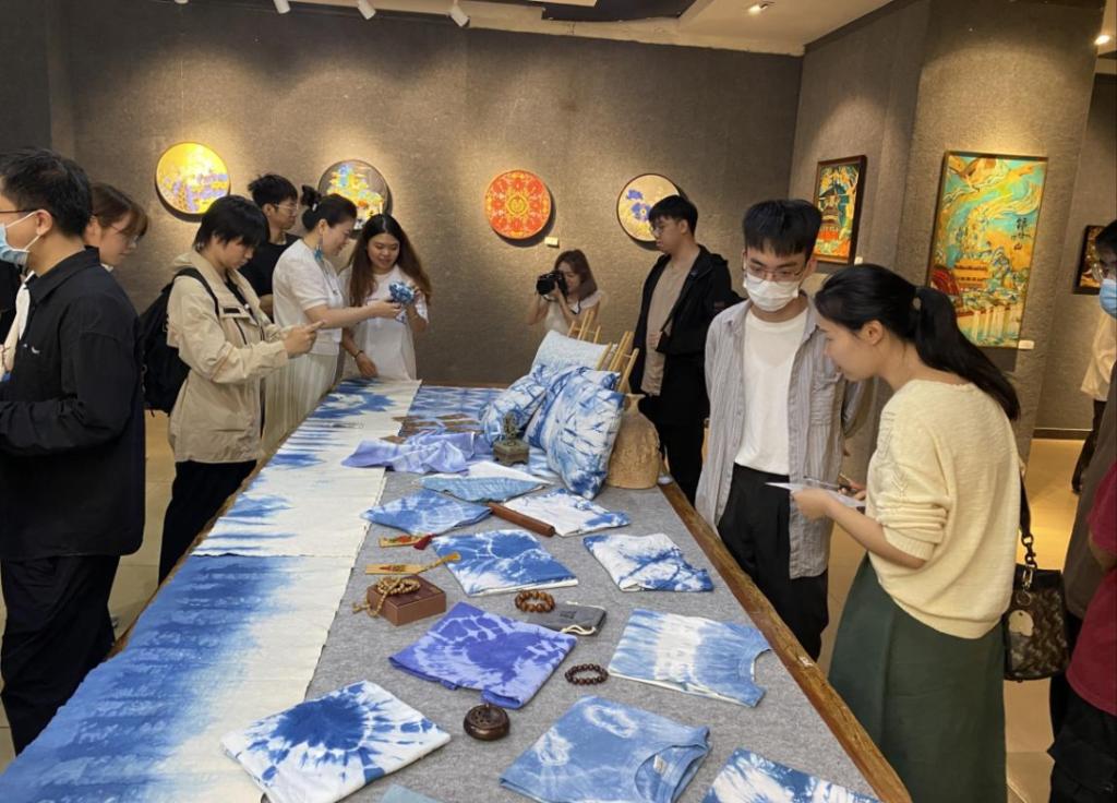 扎染作品也受到老师和同学们的一致喜爱,在老师们点评画作的言语中,能够感受到老师们对本次活动的支持与满意,在来来往往的同学们的驻足和目光中,也感受到了同学们的赞赏,很多现场参观者希望作品可以标价出售,询问价格,其中展出作品《神鹿夫诸》,已被高剑父美术馆收藏。