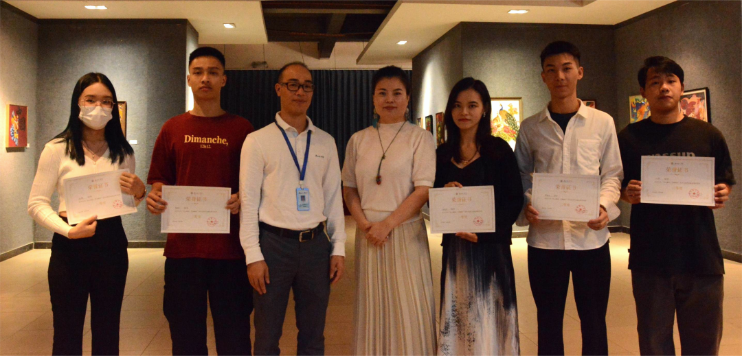 颁奖仪式,领导、老师们对作品的综合评比,最后评选出了一等奖、二等奖、三等奖以及优秀组织奖。颜冬果等领导给同学们颁发证书。