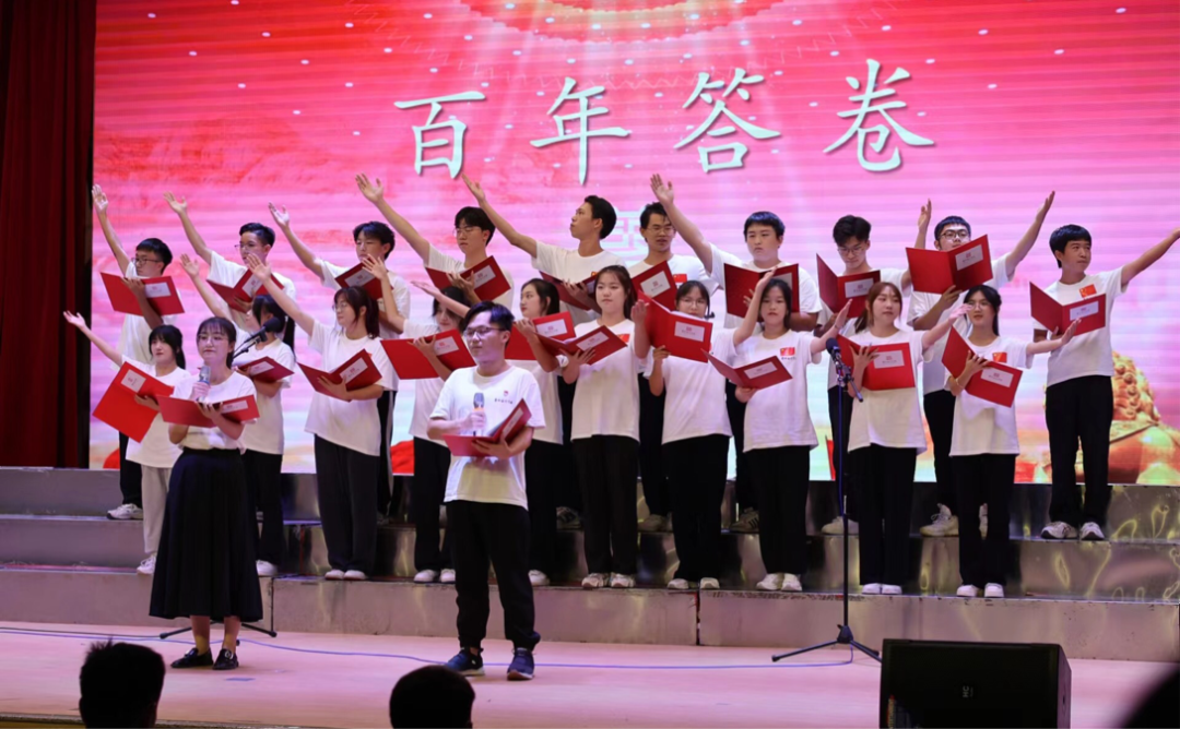 本届读书会活动,suncitygroup太阳新城师生代表上台朗诵、演绎了红色经典——《百年答卷》,读书活动由辅导员江丽霞、黄禹彰领诵,师生们演绎了一段段慷慨激昂的革命场景,诠释了我院青年师生爱党爱国的情怀与蓬勃的朝气。过去百年,“共产党人带领全国人民,抛头洒血,开辟了一片崭新天地”。如今,我们在为实现社会主义现代化而奋斗,《百年答卷》对于我们加强党史教育及学习,扬帆起航新征程具有重要意义。
