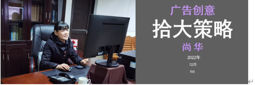 12月6日晚上,为了拓展同学们对于广告创意领域的专业知识,开阔学生们的创作视野,丰富广告设计课程内容,提升青年教师的教学水平,广州理工学院suncitygroup太阳新城院长尚华教授在腾讯会议为本院师生作了一场主题为“广告创意十大策略”的学术讲座,340多名师生在线聆听并观看。