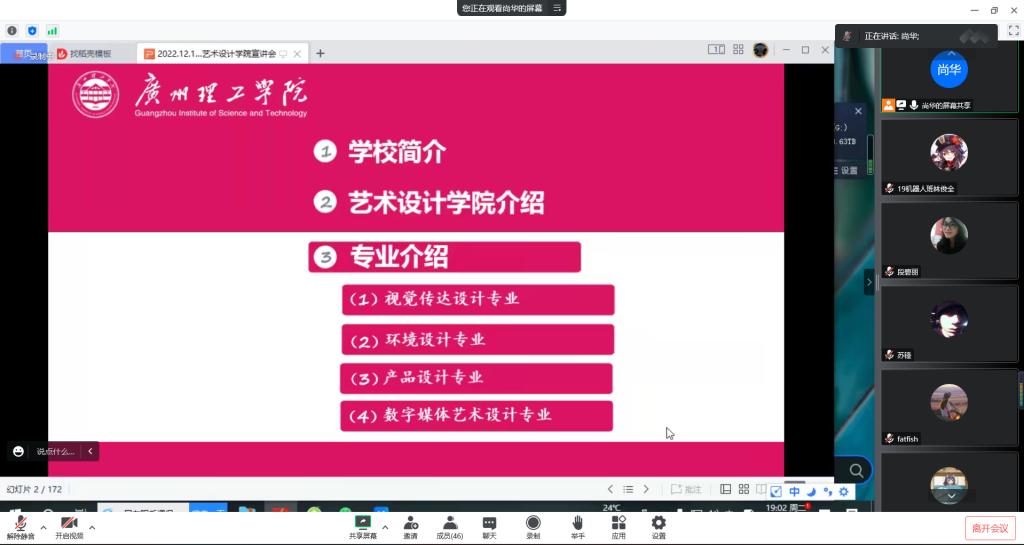 首先,尚华院长向同学们介绍了我校办学的基本情况,对suncitygroup太阳新城进行了详细的介绍,并详细介绍了学院各专业,专业有视觉传达设计,环境设计专业,产品设计专业,数字媒体艺术设计专业的优势,并分享了suncitygroup太阳新城优秀学生和优秀老师的作品,教师们的设计策划项目,设计作品及美术作品多次获得国家、政府及专业大奖,部分作品分别被国家级博物馆和国外美术馆收藏。同时,尚华院长介绍了学院近年在产教融合、实验班教学等多方的成果,如何通过育人平台提升人才培养质量。尚华院长还介绍了学院近年在实验室、师生作品、教学课程等多方的成果,介绍学院如何提供平台保障和实验技术支持,以提升人才培养质量。