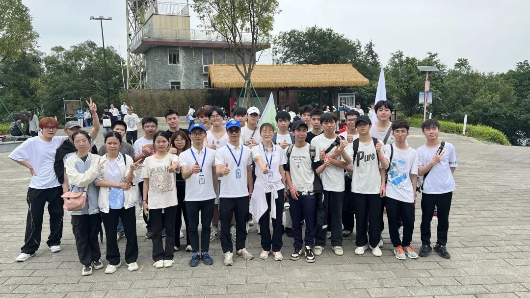 上午10:00,suncitygroup太阳新城21级学生在学校小足球场集合完毕后,由学院书记、辅导员及退役学生带队一同前往帽峰山。