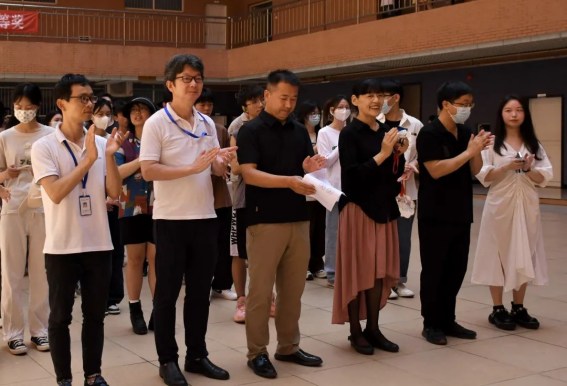 教学管理部副主任高文财作为嘉宾代表讲话,他为毕业生带来了一个好消息,为帮助学生向“设计师、工程师”身份转变,教务处决定遴选一批毕业论文(设计)成果进行实践应用推广,遴选类型包括企业策划方案、成果展览、汇报演出、设计方案、研发成果、产品实物等,对于立项的毕业论文(设计)成果,教务处、实验管理中心协同科研处、成果转化办公室予以推广应用。这对我院的毕业设计成果转化是很好的机会。