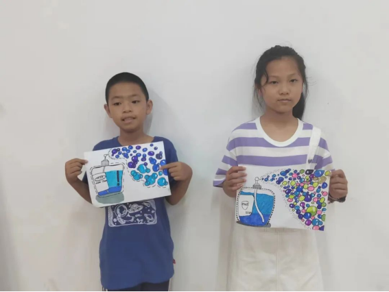 小朋友对自己的作品很满意,并留下合影