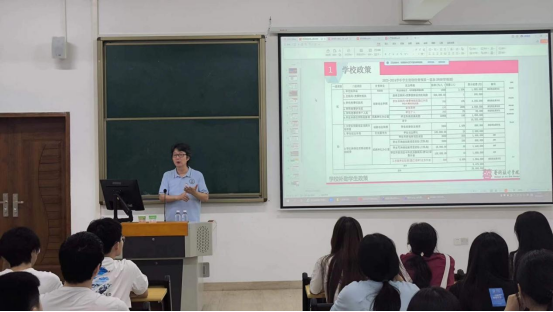 (叶保军)9月22日,我院在惠州校区教学楼208教室召开科研及创新创业专题讲座,2023级新生班干部及部分学生代表参加,副院长方滨主讲。