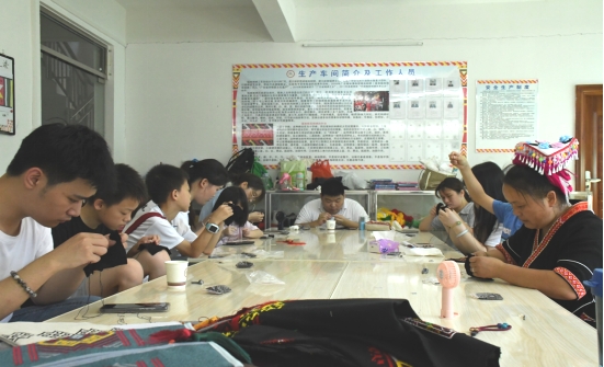 7月13-14日,我院“相约瑶乡,绘普青春”暑期三下乡社会实践队前往“一针一绣”瑶族刺绣工艺坊开展“体验式瑶绣+美育教学”课堂。 “体验式瑶绣+美育教学”的重要组成部分是活动体验,更深层激发瑶绣+美育教学的活力和生命力