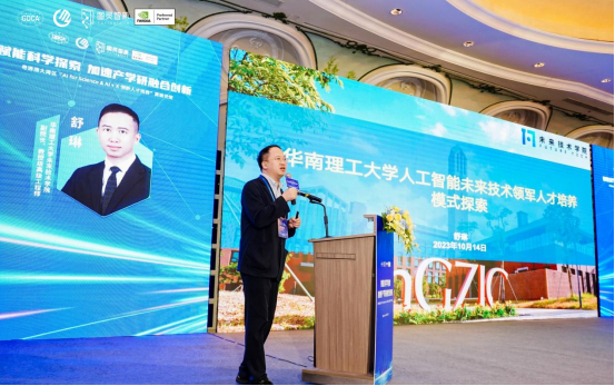 中山大学计算机学院博士生导师杨跃东教授、西安电子科技大学软件工程研究所常务所长、华山特聘教授刘西洋博导、华南理工大学未来技术学院副院长舒琳教授、广东图灵智新科技术有限公司解决方案部许英杰高级总监分别做了题为《融合超算和智算的药物分子设计》、《AI驱动的科学发现》、《华南理工大学未来技术领军人才培养模式探索》和《图灵智新AI+X创新人才培养校企合作方案的探索和落地实践》的精彩报告。