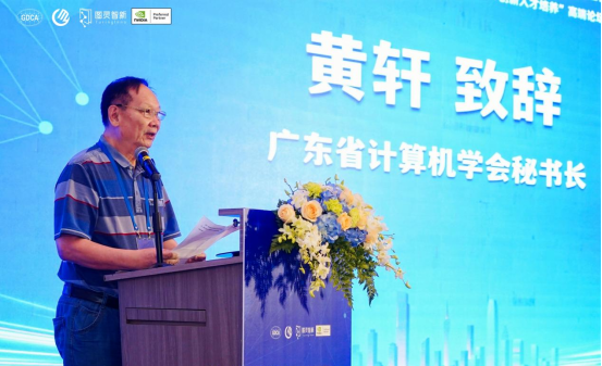 广东省计算机学会副理事长兼秘书长黄轩教授代表会议主办方对参加会议的嘉宾表示热烈欢迎,他指出本次会议的举办旨在分享AI在推进科学探索和人才培养中的实践经验、先进思维和研究成果,加速AI+X创新人才培养的发展与变革。