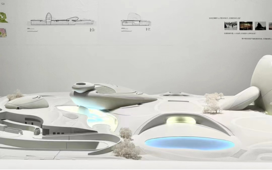 马岩松——流动的大地展览共分“对话”“进程”“感觉即真实”“狂想”四个章节,以标志性建筑和公共建筑为主,用设计回应了高密度城市中人们的精神和情感需求。展品除了深圳湾文化广场、洛杉矶卢卡斯叙事艺术博物馆、中关村永久会址、海南科技馆等建筑实景模型之外,还包括这些地标性建筑从设计创意、概念设计阶段的手稿、深化设计过程中的图纸演变、建造过程中的样板模拟、视觉记录等,全景式地展示了设计师的创作理念和作品内涵。