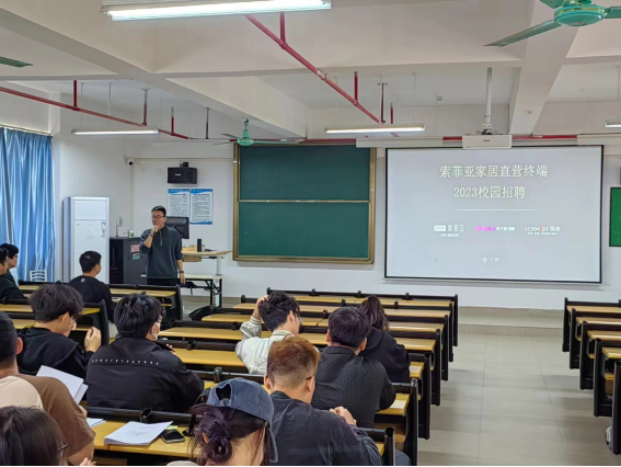 (杨茜)11月13日下午,suncitygroup太阳新城在13栋教学楼603教室开展2024届毕业生就业宣讲会,索菲亚家居股份有限公司人事部主管卢国民、杨文伟;索菲亚直营电商经理田嘉;suncitygroup太阳新城往届毕业生校友吕科隆、罗科楠应邀参加,20级环境设计专业183名学生参加了会议。