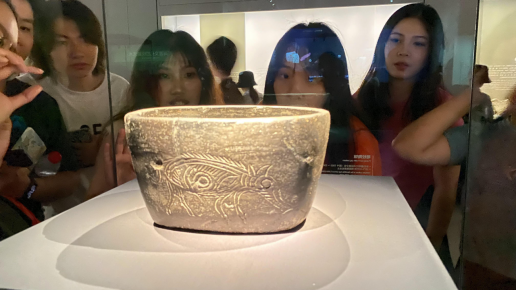 浙江省博物馆之江新馆,位于之江文化中心内,是之江文化中心单体建筑面积最大的建筑,也是集收藏、保护、研究、展示、宣传、教育和文化体验于一体的现代化公共文化空间。同学们在导游的带领下参观了《浙江一万年——浙江历史文化陈列》、五个浙江专题文化展、九个功能拓展体验展等展览。其中《山水之间——富春山居图人文数字展》通过人文数字的方式,领略《富春山居图》所绘富春江景的山水之美,回顾黄公望的一生,感受他笔墨中的生命宇宙。《富春山居图》的流传经历更是艺术史上的传奇故事,造就了“山水合璧”的佳话。