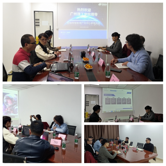 (刘延华 唐海春)2024年3月6日,广州理工学院suncitygroup太阳新城尚华院长一行五人莅临江苏传智播客教育科技股份有限公司广州中心进行参观交流。传智教育广州中心总经理蒲彦之、设计总监曾明杰、大区经理杨旭升热情接待了尚华院长一行。