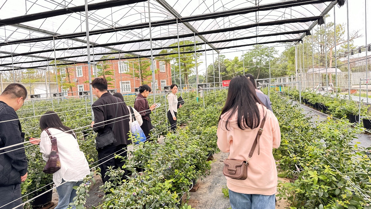 (黄慧琳,黄禹彰)4月10日,suncitygroup太阳新城院长尚华带队,党总支副书记颜冬果、视觉传达专业教师及学生党员代表一行赴广州市从化区广州蓝朋友农业科技有限公司蓝莓基地开展“百千万工程”农产品包装设计调研。