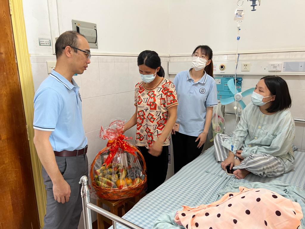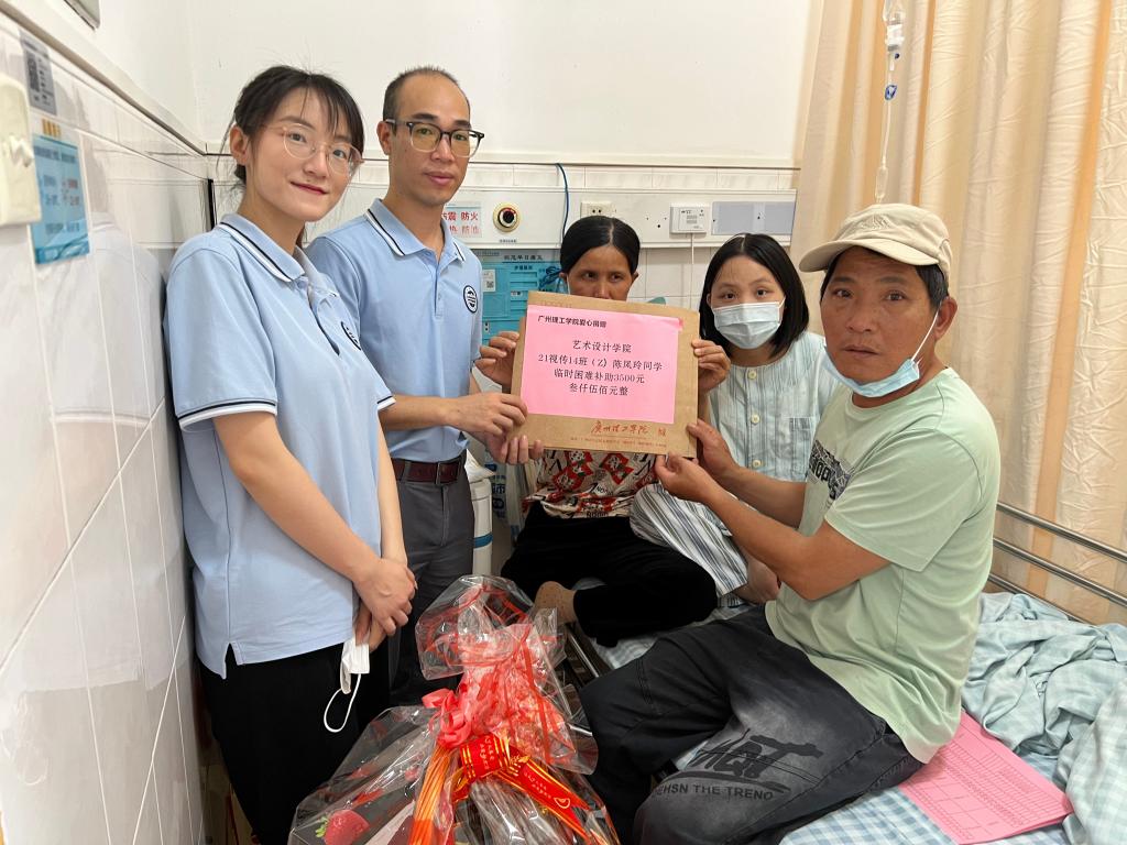 4月12日上午,suncitygroup太阳新城党总支书记颜冬果和辅导员江丽霞老师和黄禹彰老师代表全院师生,前往广东医科大学附属医院看望了陈凤玲同学,并将筹集到的善款亲手交到了他的手中。看到老师和同学们的到来,陈凤玲的眼中闪烁着感动的光芒。她表示,这些善款不仅是他的治疗费用,更是她坚持治疗的信心和勇气。