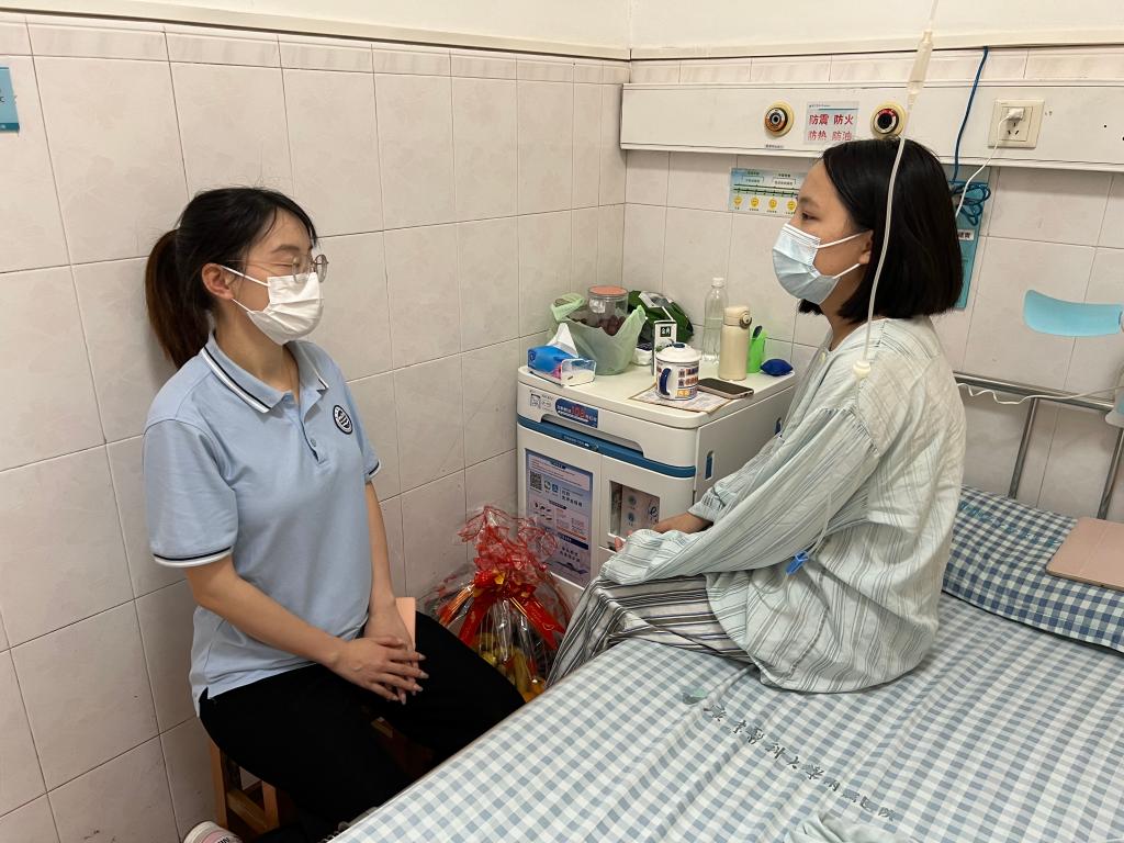 学院辅导员江丽霞关心陈凤玲同学病情