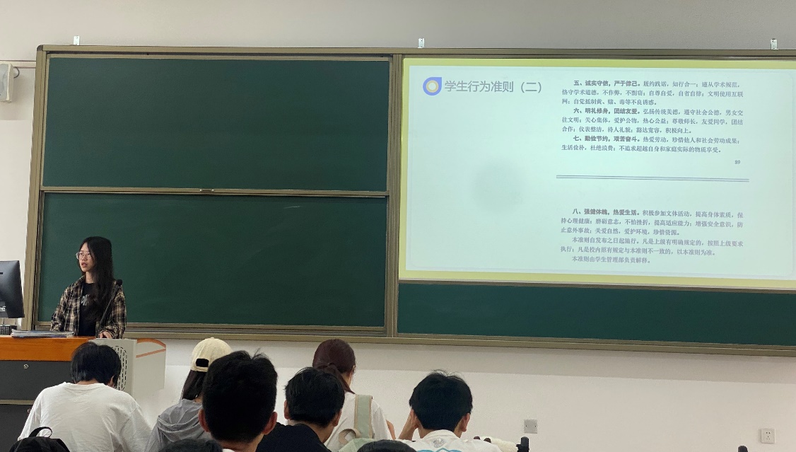 学习会上,各团支书兼班长带领同学们学习《学生手册》内容,针对学生在校规范进行介绍,动员学生积极学习并遵守校规校纪。