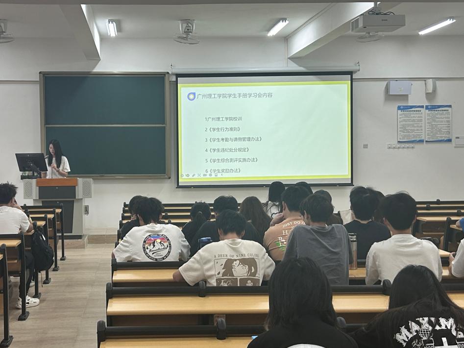 (张碧婷)4月24日素质教育周期间,suncitygroup太阳新城2023级学生在广州理工学院惠州博罗校区教学楼各班会教室开展《学生手册》学习会,学习会由各团支书兼班长主持,全体同学参与。本次学习会旨在增强学生对校规、校纪、校风等方面的了解。