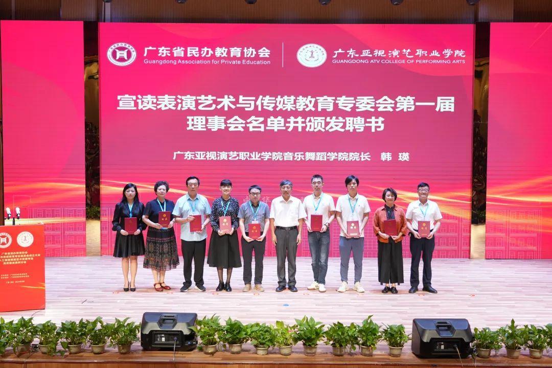 (李德乾)2024年9月13日上午,广东省民办教育协会表演艺术与传媒教育专业委员会(下称专委会)成立大会在广东亚视演艺职业学院顺利召开。广东省民办教育协会会长赵康、常务副会长张耀荣、秘书长朱祖胜,广东广播电视台新闻频道《品牌广东》栏目外联副主任、广东广视融媒体中心副主任王晓,广东亚视演艺职业学院董事长邱震钰、校长丁孝智、执行校长江旭东、副校长秦甄、影视学院院长李鼎、音乐舞蹈学院院长韩瑛,广东工商职业技术大学音乐舞蹈学院院长王鸿昀、广州理工学院suncitygroup太阳新城院长尚华、广东白云学院传媒学院副院长成骏、广州华夏职业学院建筑与艺术传媒学院影视多媒体技术专业群带头人胡敏、私立华联学院音乐系副主任曲有斌以及各民办高校艺术传媒专业相关负责人等100余人出席会议。会议由韩瑛主持。