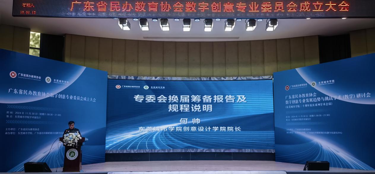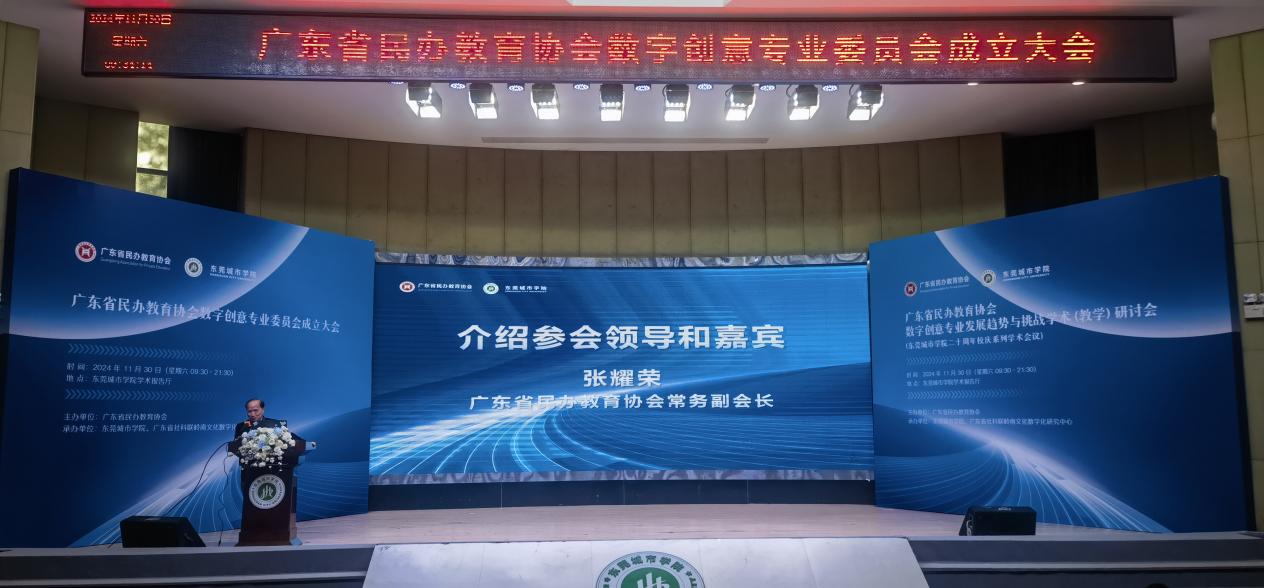 (彭国文)为促进广东省数字创意专业教育的发展,提高专业教育水平,广东省民办教育协会于2024年9月30日在东莞城市学院召开广东省民办教育协会数字创意专业委员会(下称专委会)成立大会暨数字创意专业发展趋势于挑战教学研讨会。广东省民办教育协会常务副会长张耀荣,广东省动画、数字媒体教学指导委员会秘书长廖向荣,东莞城市学院党委书记章德胜、执行校长方伟华、副校长李振华、创意设计学院院长何帅,广州理工学院suncitygroup太阳新城院长尚华,广东白云学院传媒学院副院长成骏及各民办高校艺术传媒专业相关负责人等100余人出席会议。会议由韩瑛主持。