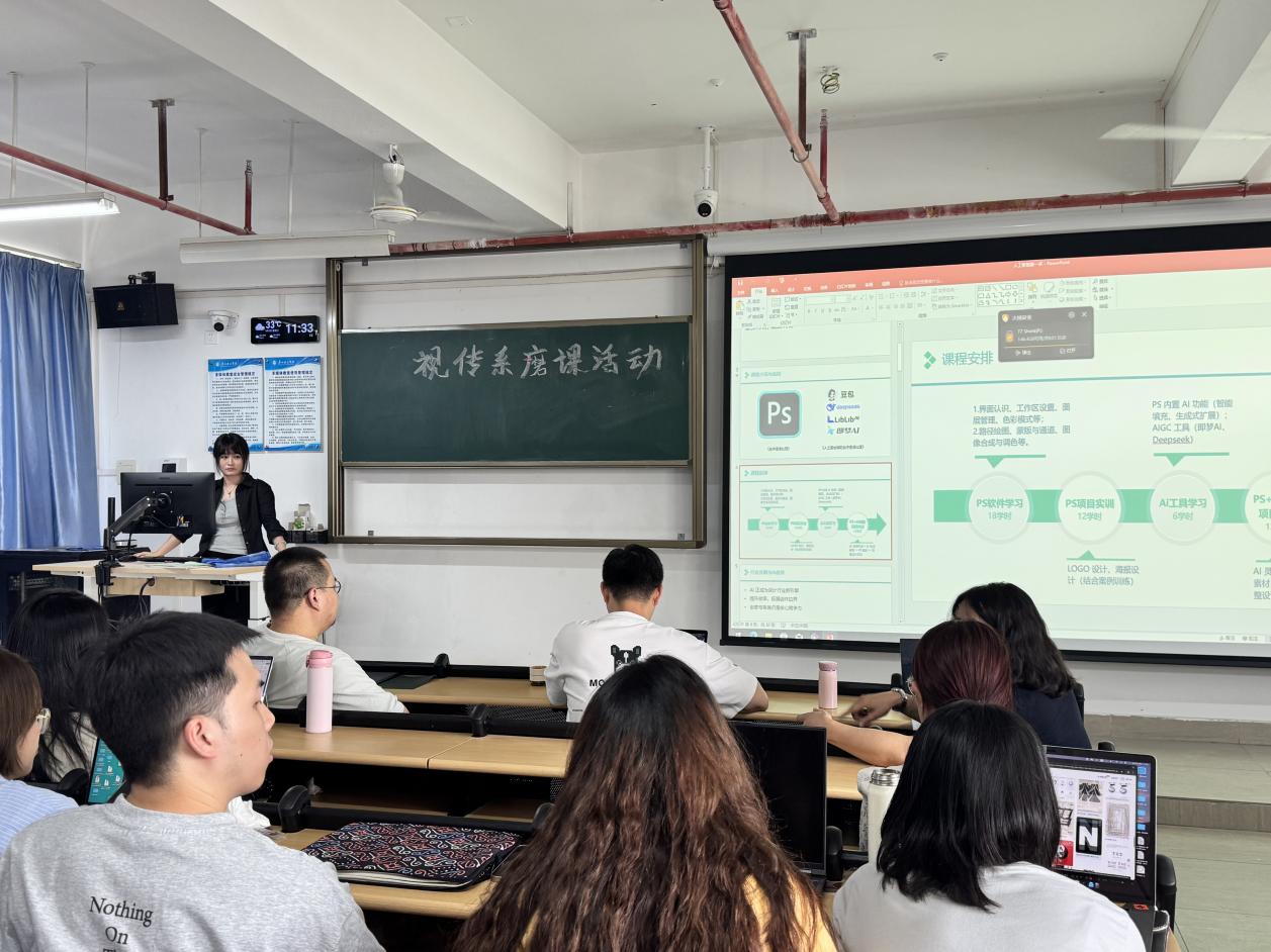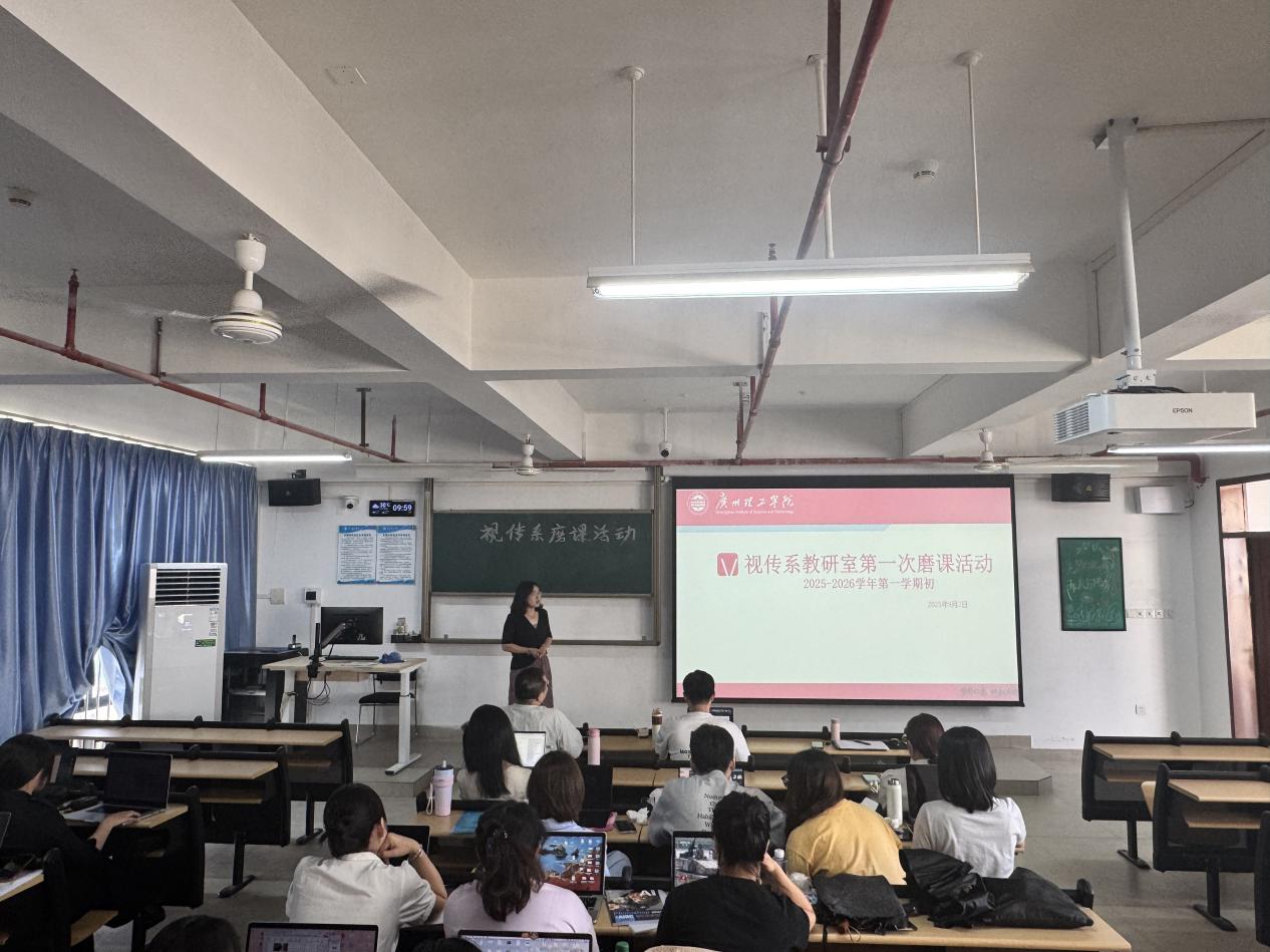 2025年9月3日,suncitygroup太阳新城视觉传达设计系在13栋教学楼902教室召开了2025-2026学年教研室第一次磨课活动。本次活动由段碧丽主任主持,视觉传达设计系全体30位教师积极参与。活动特别邀请了黄秋明教授、高凤伟教授担任评委,与段碧丽主任、潘雨沛主任及谢宇老师共同组成专家评审组。