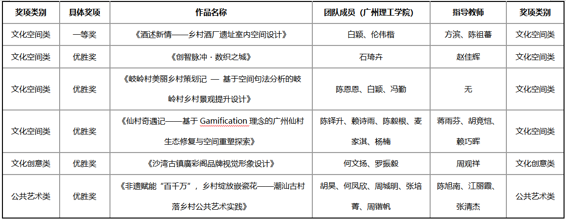附:2024年广东高校“乡村创新”设计大赛省级以上获奖情况汇总