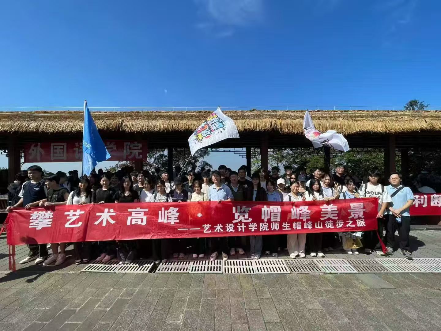 上午大操场内秩序井然,2023级学子们神采飞扬、整装待发。在学院领导简短有力的动员后,师生们以班级为单位,在辅导员及学生骨干的带队下,迈着矫健的步伐向帽峰山出发。沿途山道蜿蜒,秋意盎然,金黄的秋叶与苍翠的林木相映成趣,山间清爽的秋风裹挟着草木的清香扑面而来。学子们结伴而行,拾阶而上,时而交流沿途景致,时而为身旁同学鼓劲,清脆的笑声与坚定的脚步声交织,为秋日山林增添了别样生机,尽显艺设学子昂扬向上的青春姿态。