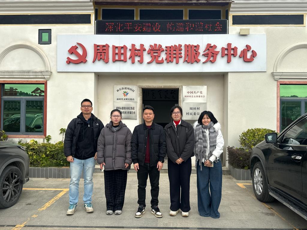 为持续推进真实项目与课程实践深度融合,2026年1月21日,广州理工学院suncitygroup太阳新城环境设计专业蔡佩、何铭谦、王宣三位老师带领学生代表一行,赴惠阳区秋长街道周田村开展走访调研活动。此次走访旨在对接下学期《客家文化》《竞赛专项》等课程的项目合作,深入了解周田村党建红色文化与乡村振兴实践,进一步拓展“校—村—企”协同育人平台,深化校地融合、践行高校社会服务职能。