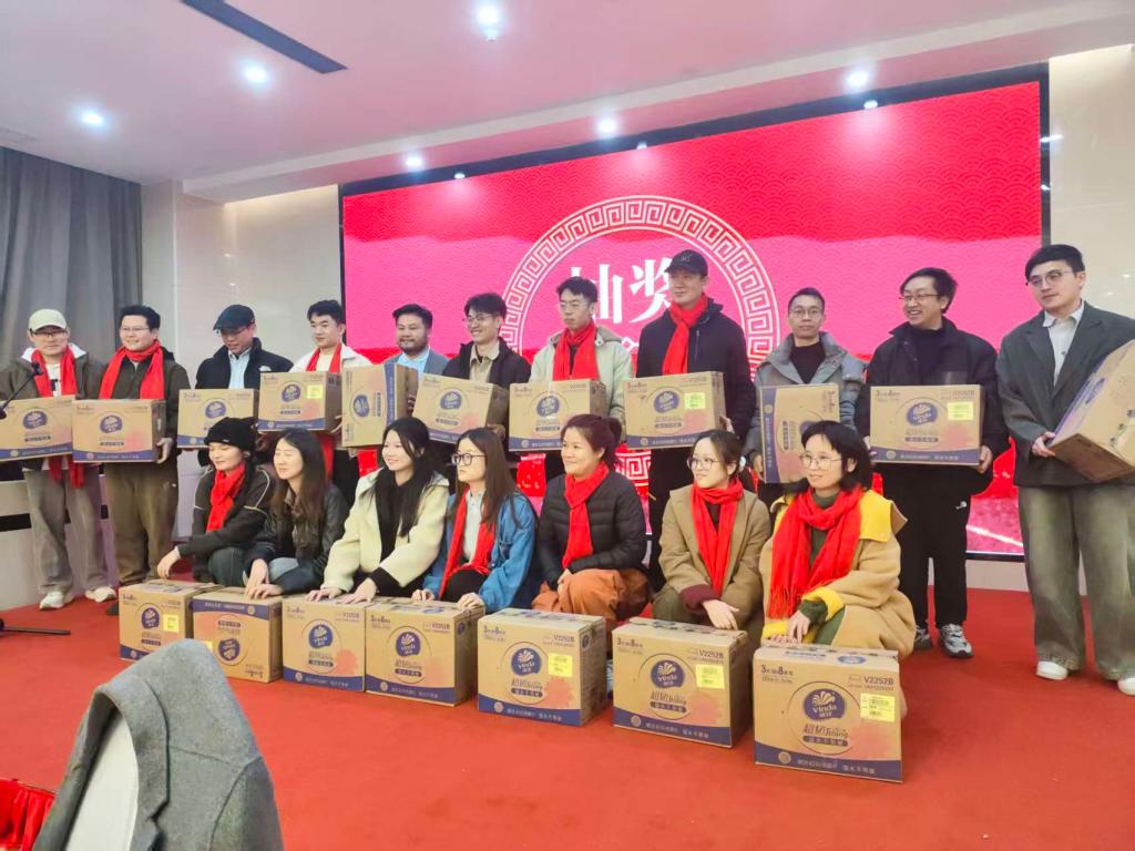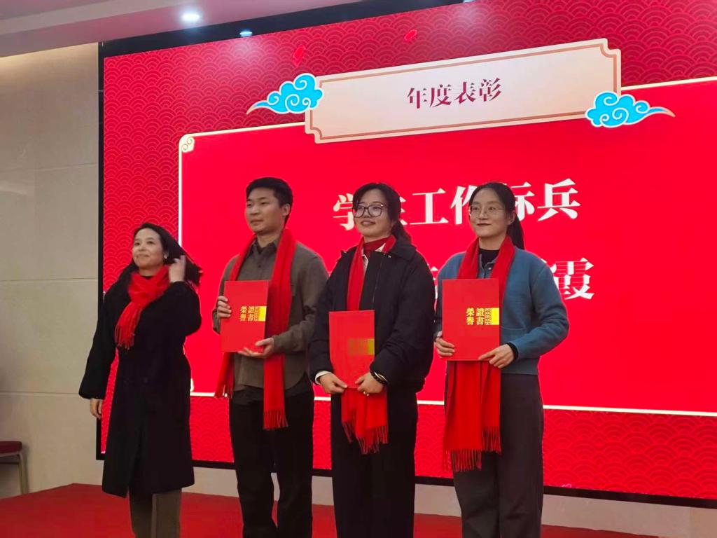 在表彰环节中,学院对年度表现突出的教师予以表彰,共评选出“教学工作标兵”2人,“科研工作标兵”2人,“双创工作标兵”2人,“社会服务标兵”6人、“学生工作标兵”2人、“党建标兵”2人。随后进行的抽奖活动气氛热烈,共抽取三等奖20名、二等奖20名、一等奖10名。