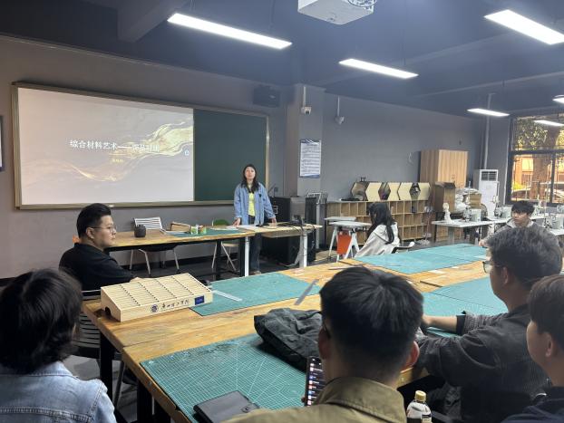 在磨课环节中,窦强老师带来了《计算机辅助设计Rhino》课程的展示。窦老师通过实际案例演示,生动展现了参数化建模的逻辑与技巧,强调软件教学与设计思维的融合,旨在帮助学生突破技术壁垒,高效表达设计创意。张洋老师的《时尚饰品设计》课程则充满时尚气息与市场洞察。她从文化溯源入手,结合当下流行趋势,详细阐述了从灵感提取到成品实现的全过程,引导学生在设计中平衡艺术审美与商业价值。陈咏妤老师的《综合材料艺术》课堂打破了传统材料的界限。通过丰富的图片与实物展示,她讲解了多种非传统材料在艺术创作中的肌理表现与情感表达,鼓励学生大胆实验,拓展设计语言的边界。刘湘洪老师在《设计材料与工艺》的磨课中,聚焦于“材料即语言”的教学理念。她系统梳理了各类新型材料特性及其在当代设计中的应用场景,强调理论与实践结合,夯实学生的设计落地能力。