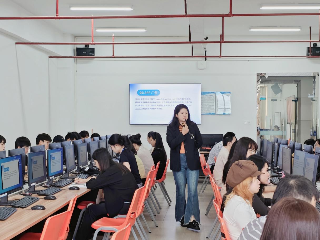 10月31日,suncitygroup太阳新城视觉传达设计系开展《广告设计》课程观摩课活动。本次课程由赖家恩老师授课,李瑞副院长、段碧丽主任、王凡主任、安陆禄主任、陈咏妤主任以及多位年轻教师到场观摩学习。课程围绕广告媒介的类型、特点及应用策略展开,通过理论讲解与案例互动相结合的方式,呈现了一堂内容丰富、形式生动的专业课程。