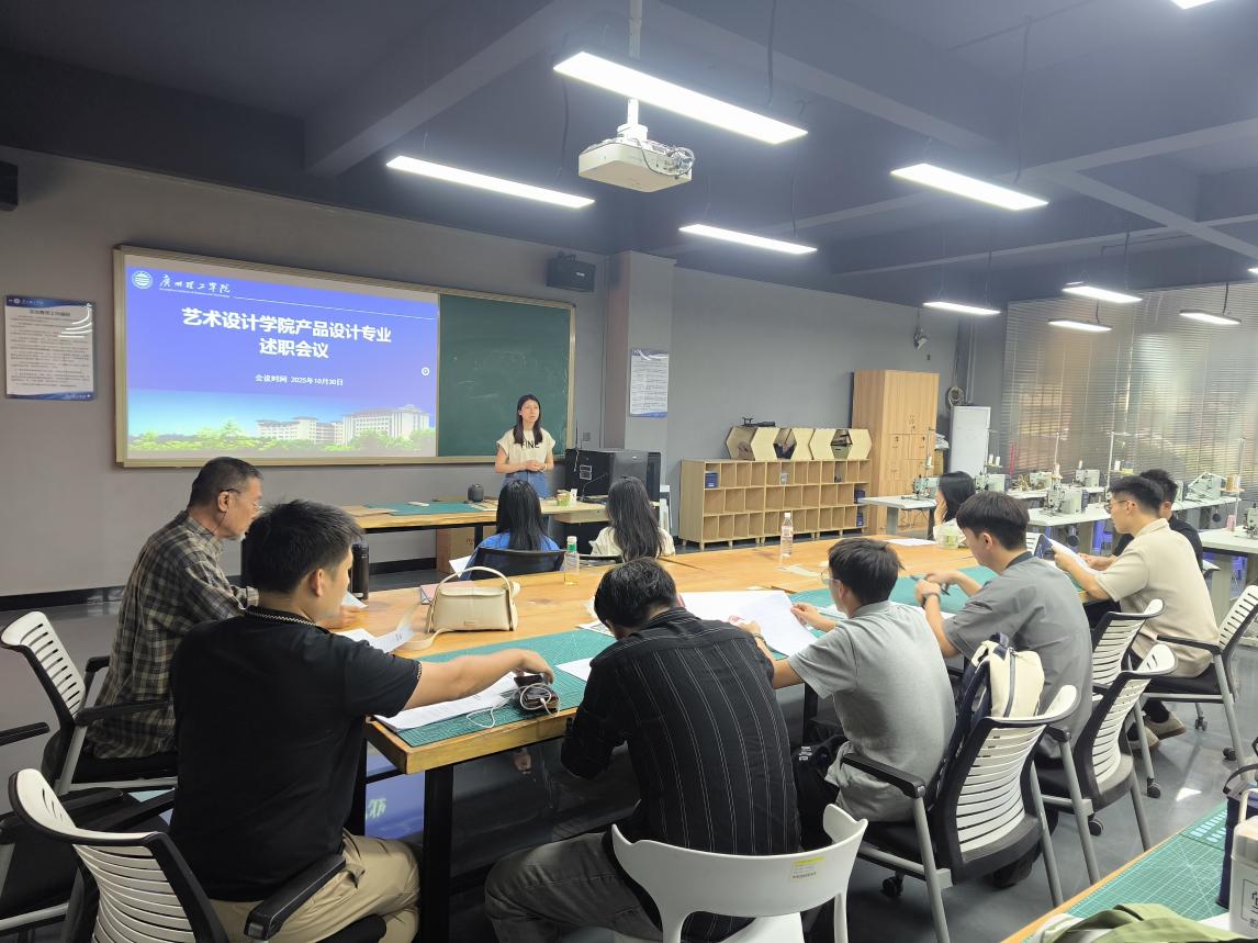 广州理工学院suncitygroup太阳新城,2025年10月30日 —— 为全面总结2024-2025学年的教学与科研工作成果,提升教师队伍的整体素质和教学水平,广州理工学院产品设计专业于今日成功举办了年度述职会议。本次会议由产品设计专业13名教师参加,旨在通过述职交流,展示过去一年的工作成绩,反思不足,并为未来的教学和科研工作制定更明确的目标。
