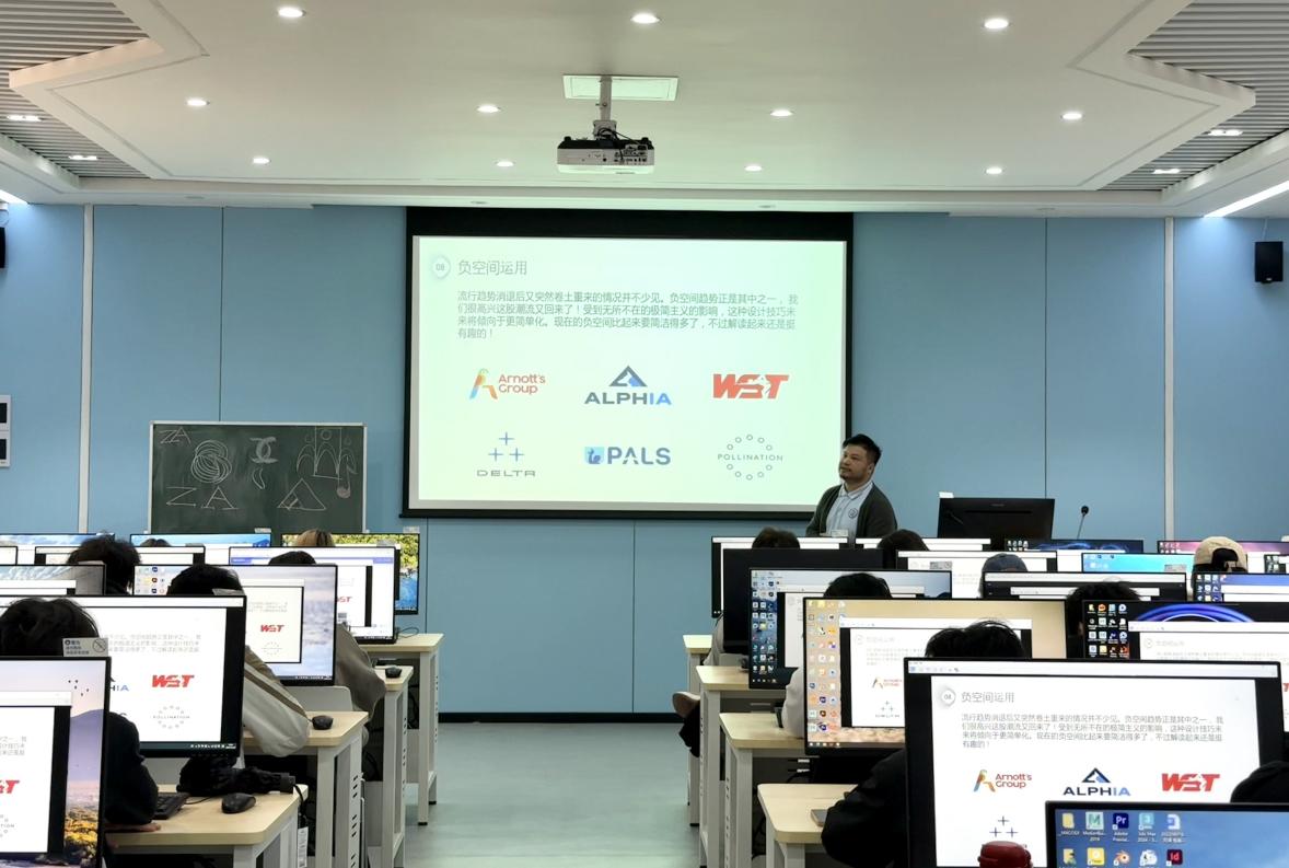下午第五节课,吴穗徽老师主讲的《标志设计》专业课程,本次课程以“标志设计的起源与发展”为授课主题,课程遵循规范教学流程推进,随后结合前期课程内容复习标志设计的功能、特征等核心知识点,为新课导入筑牢基础。在核心教学环节中,吴老师以时间轴为脉络,系统梳理中外标志设计的发展历程,完整呈现不同历史阶段的标志设计特征,并强调当前标志设计的国际化与多元化发展趋势。课程采用“案例分析+随堂练习”的教学模式,通过闻名全球的品牌标志创新案例,引导学生实现传统设计意识与现代趋势的融会贯通。