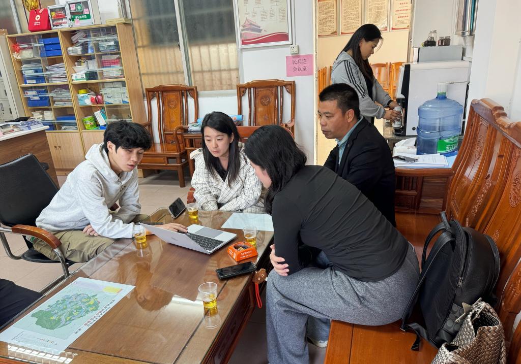 12月9日,广州理工学院农村科技特派员赖家恩、朱乐怡携学生团队,在肇庆四会市龙甫镇蚁田村党群服务中心,与副镇长臧路晴、村党支部书记张振通就12月下旬的墙绘实践方案进行专项沟通。