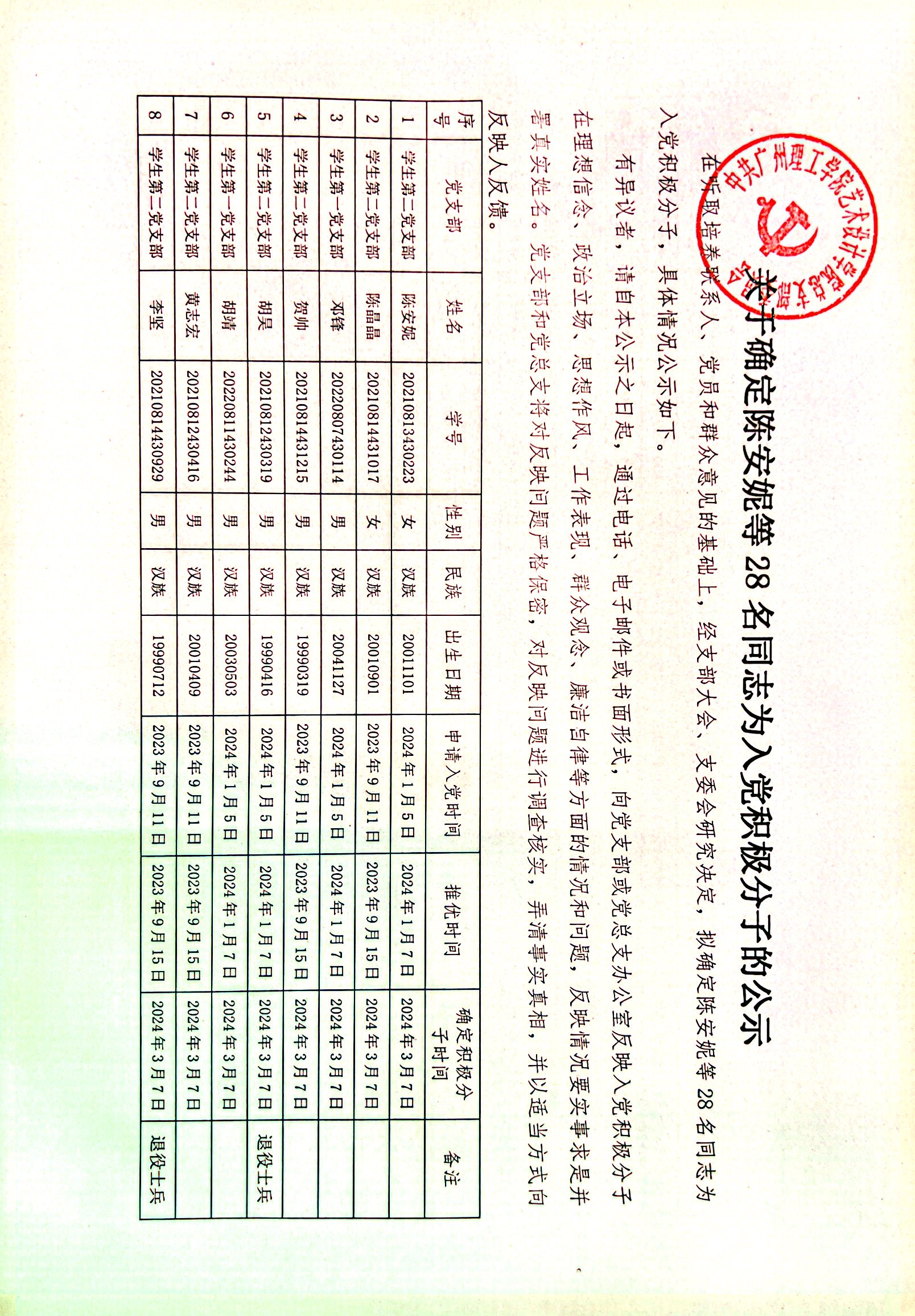 关于确定陈安妮等28名同志为入党积极分子的公示