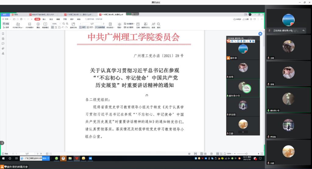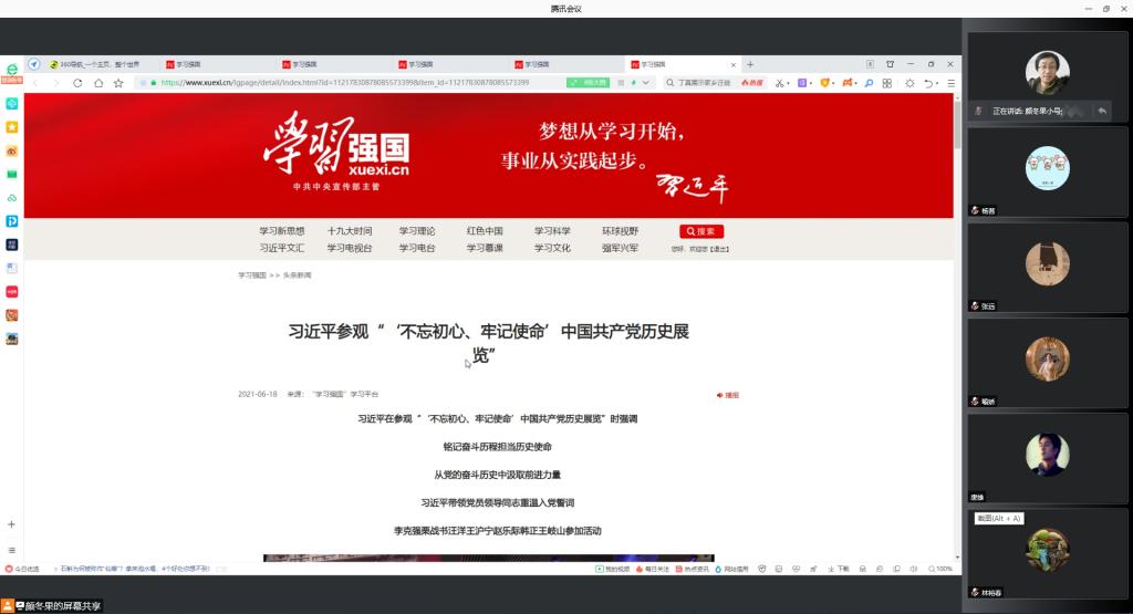 根据校党委的要求,7月8日上午,suncitygroup太阳新城教工党支部组织全体教工党员开展线上专题学习会议,集中学习了习近平总书记在参观“不忘初心、牢记使命”中国共产党历史展览时的重要讲话精神,党总支副书记全艳同志出席会议并总结讲话。