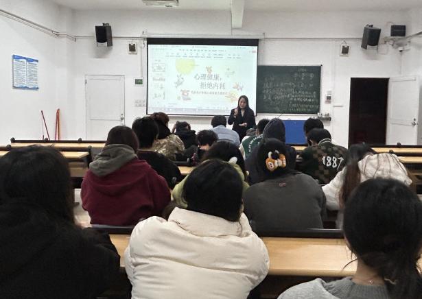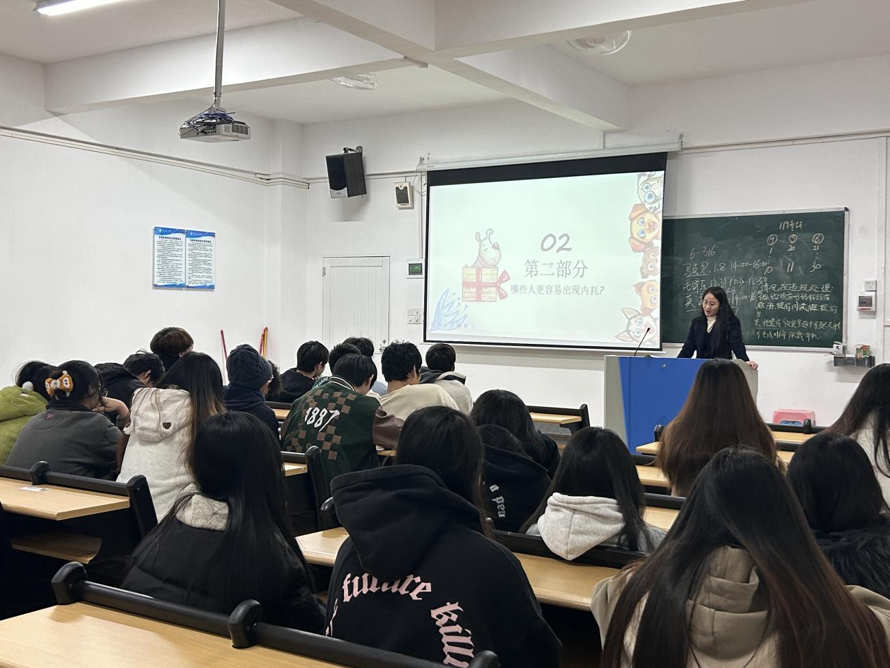 (李桂珊)为促进学生心理健康,增强自我认知和成长,2024年12月15日晚,suncitygroup太阳新城在白云校区7栋综合楼召开以“心理健康,拒绝内耗”为主题的班会。此次班会旨在与学生共同探讨如何有效反内耗,帮助学生认识和理解自我内耗的概念,分析哪些人更容易陷入内耗状态。