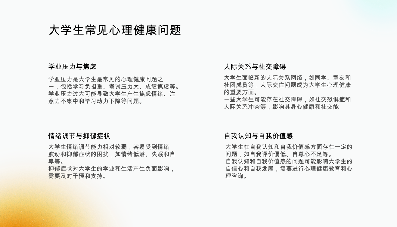 接着,班会深入探讨了大学生心理健康问题的高发原因及常见表现,如学业压力、人际关系困扰、自我认知和身份建设等。同学们结合自身实际,纷纷表示在学业和生活中确实存在类似的压力和挑战,并希望能够通过此次班会找到应对之策。
