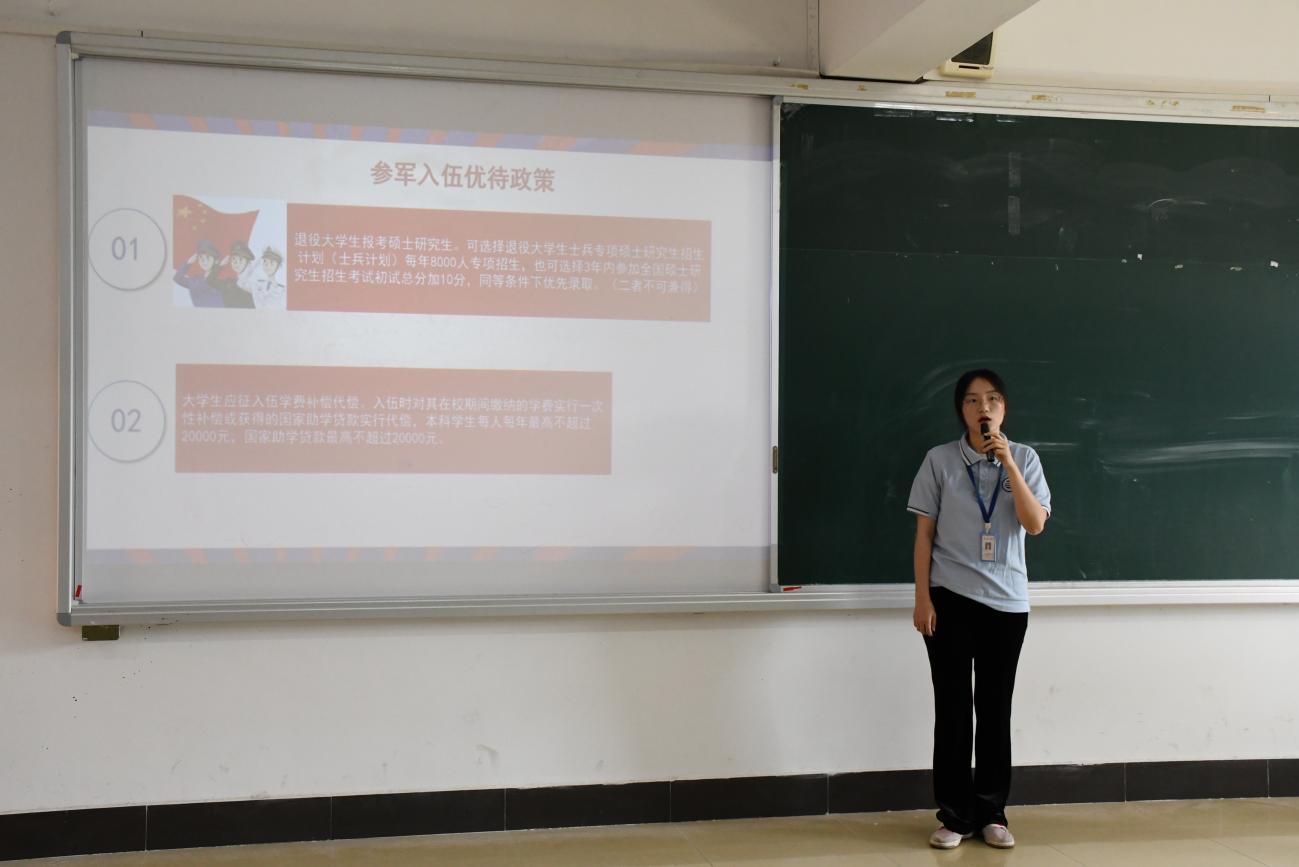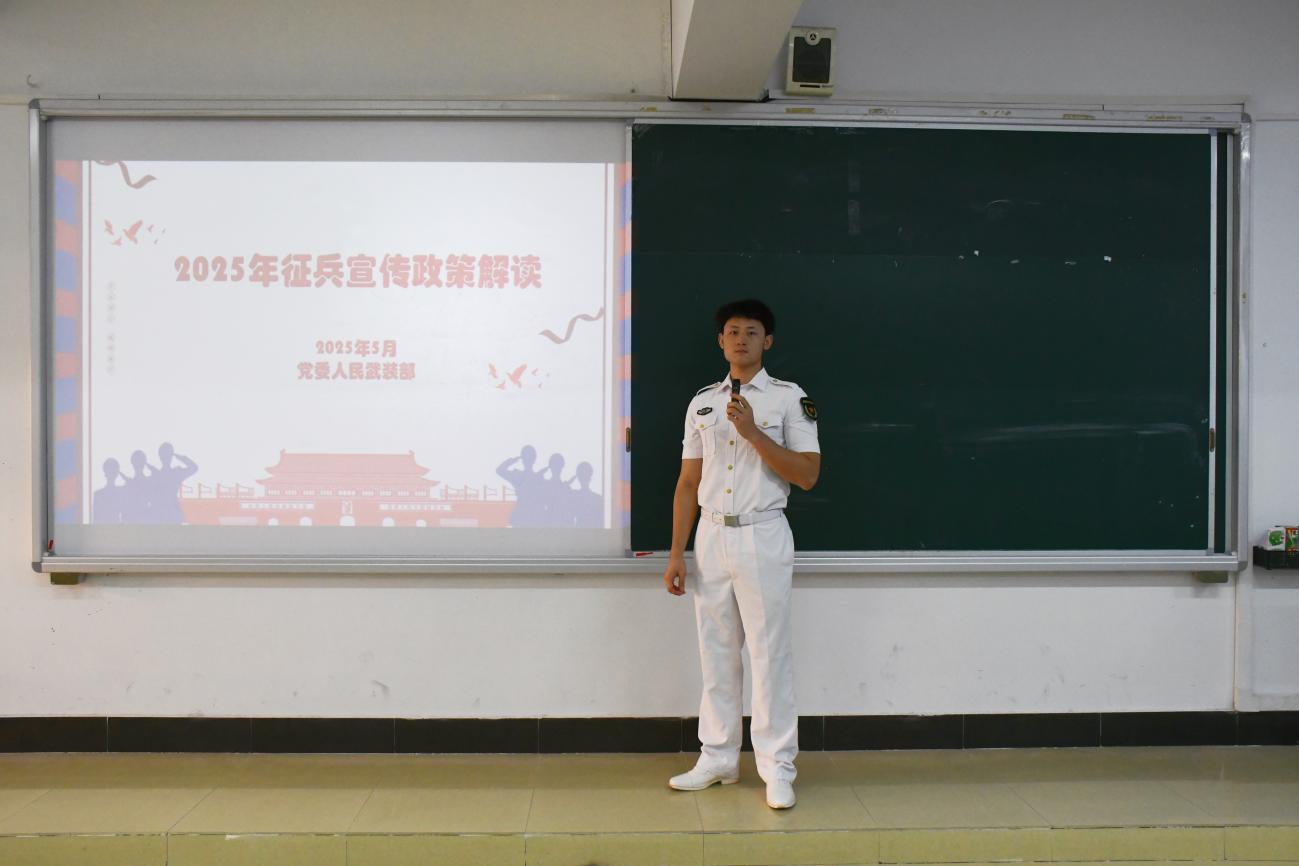 特别是在政策解读环节,张坤燊同学详细介绍了2025年征兵政策。大学生参军不仅能享受学费补偿代偿,还有考研加分、专项招生等优待。在军队发展上,士兵可通过多种途径成为军官或军士,退役后也有安置、就业创业等方面的政策支持。针对同学们关心的问题,如兵役登记与应征报名区别、征兵时间等,他都一一耐心解答。