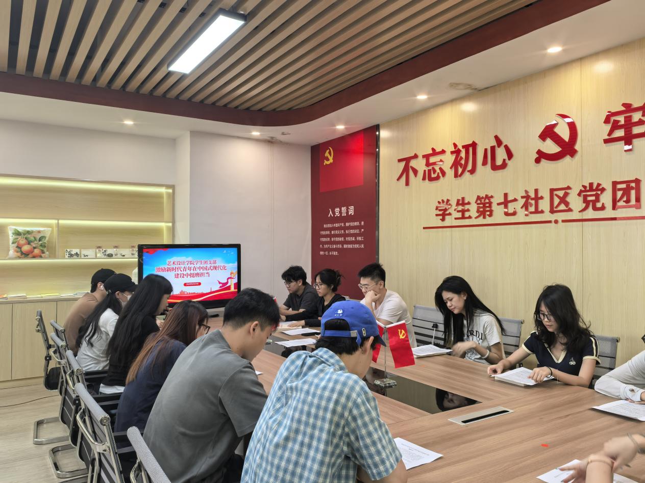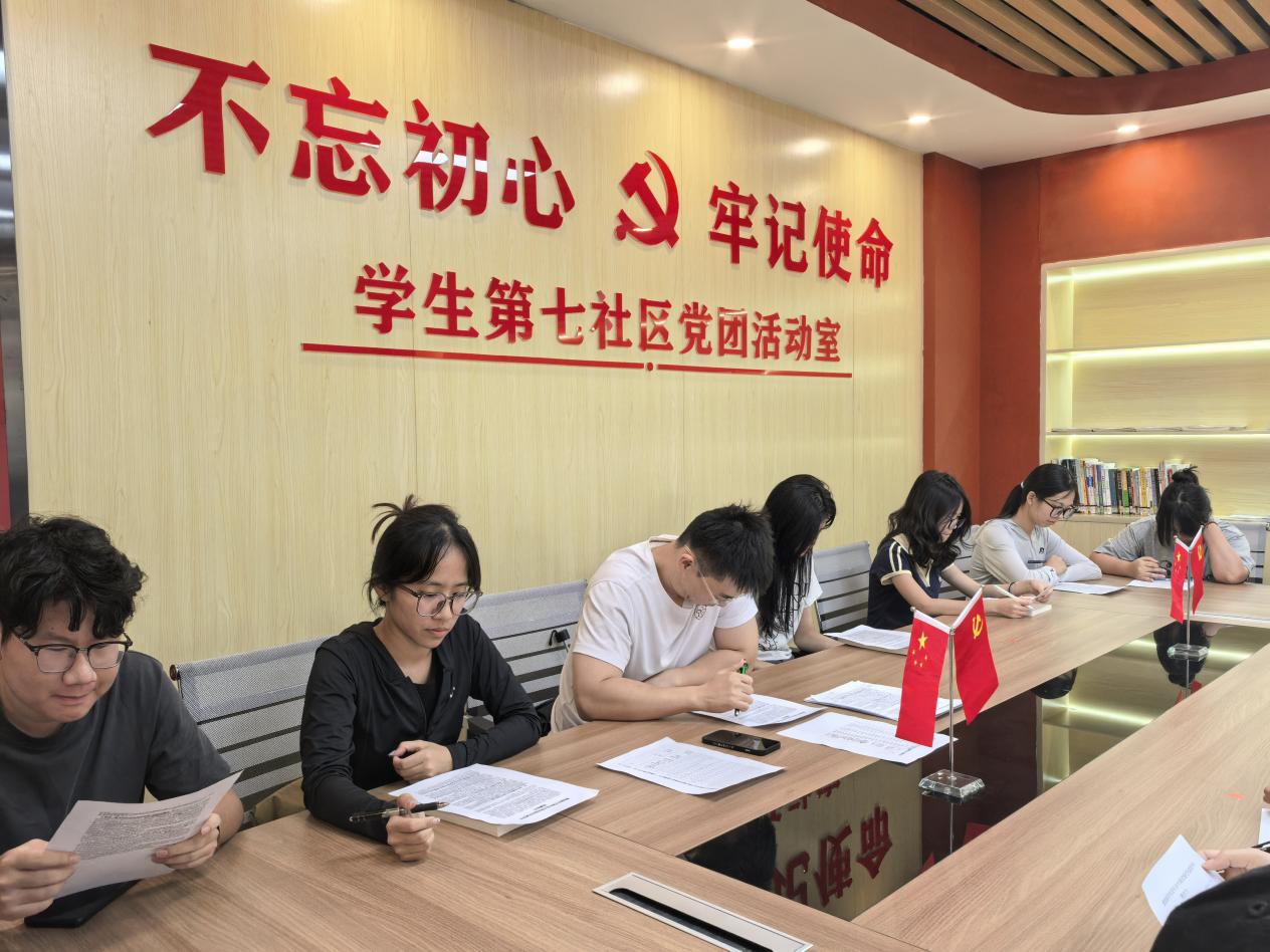 6月19日下午,suncitygroup太阳新城共青团支部在学生第七社区党团活动室开展“中国式现代化建设中挺膺担当”专题学习,会议由王鑫宇老师主持,辅导员郑彩霞老师、李德乾老师、胡明清老师及suncitygroup太阳新城23级团支书兼班长参会。