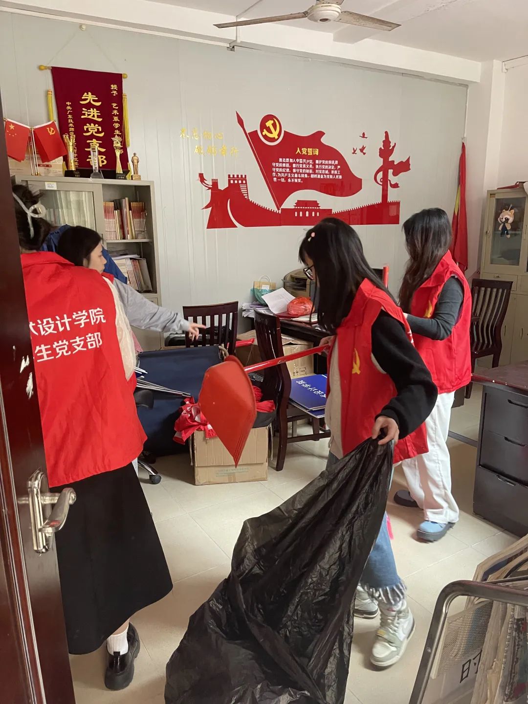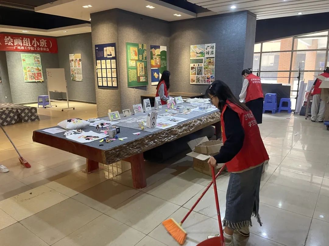 各志愿者分工明确,拿着垃圾袋和扫帚等清扫工具在提前分好的卫生区域开始打扫卫生,他们认真细致不放过任何角落,将杂乱无章的绘画材料细致收纳。经过打扫后党建工作室和suncitygroup太阳新城展厅焕然一新,展现学生们相互合作、乐于奉献的精神,对学校校风建设起到了积极的推进作用。