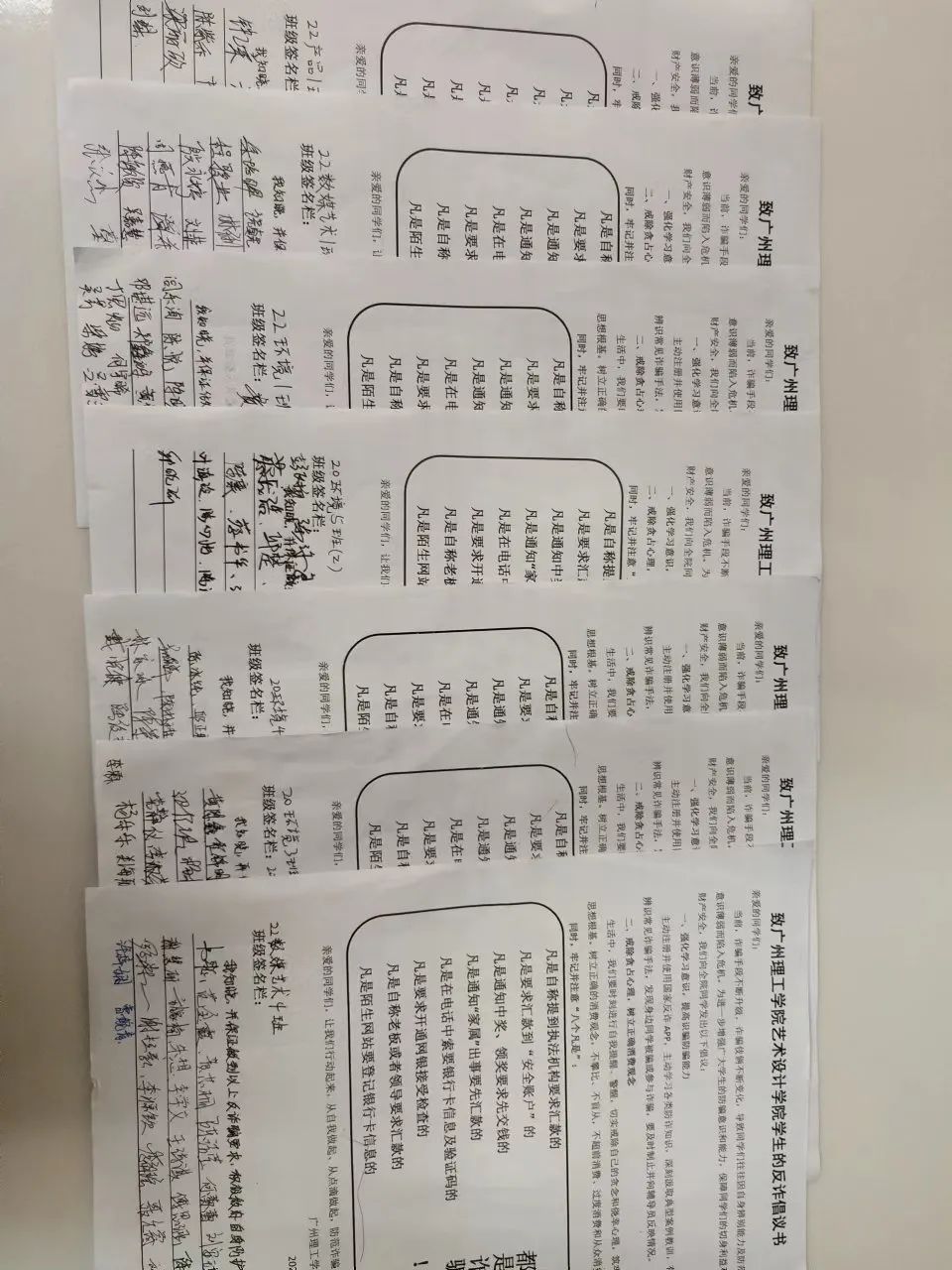 此次倡议活动,同学们纷纷签字确认,表示会做到以上反诈要求,做好自身防护,共创平安校园。