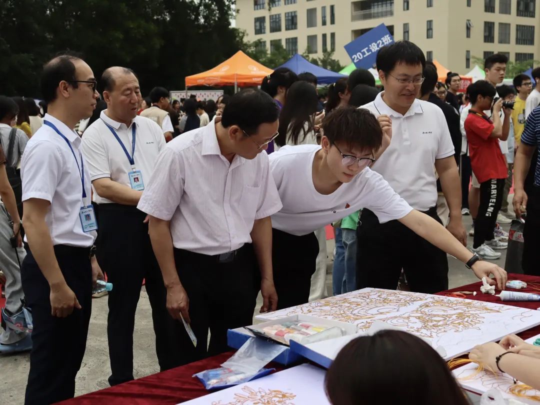 校长胡社军、党委书记黄圣诚、常务副校长伏焕昌、党委副书记肖海、副校长张日新等领导前往我院展区指导工作,学院院长尚华、党总支副书记颜冬果、学工组长江丽霞、团总支书记叶保军、学生党支部书记黄禹彰,就业指导杨茜,辅导员郑彩霞、李德乾等老师出席本次作品展。