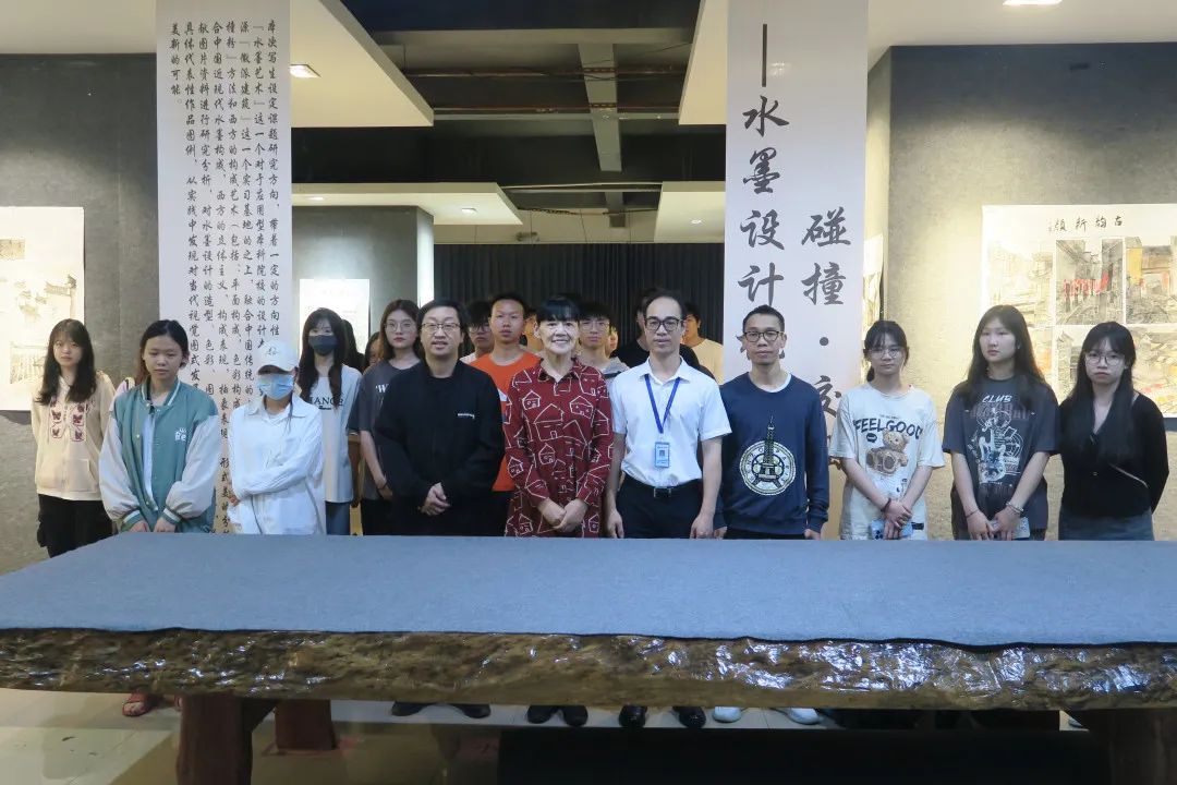 2023年4月24日,由我院承办《碰撞.交融一水墨设计视觉图像展》开幕式在7栋1楼美术展厅举行。suncitygroup太阳新城院长尚华教授,院长助理陈祖蕃老师,党总支副书记颜冬果,曾秋老师以及21级全体学生参加了开幕式。