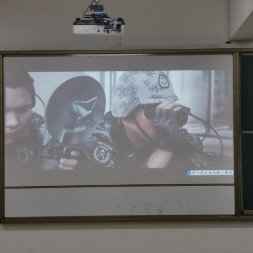 (李蔼彤)历史川流不息,精神代代相传。为了继续弘扬光荣传统,延续红色血脉,永远把伟大的建党精神继承下去,发扬光大,绝不容其他国家侵犯我国,2024年4月24日,学院组织全班全体同学在7栋综合楼118教室观看电影《战狼》活动。