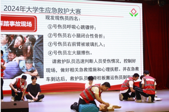 比赛内容包括三个环节:应急救护演练、选手答题和主题演讲。我院参赛队伍模拟出运动伤害现场以及伤员出现心脏骤停、创伤包扎、肢体受损等情况,并对这几种情况做出了相应的急救措施。参赛选手熟练回答问题和积极认真的态度,充分体现前期准备的充足。围绕主题展开对紧急救护的模拟场景演讲,结合在校园生活经典案例,讲述紧急救护的重要性,借此提高应急安全意识。经过激烈的比赛,我院团队荣获三等奖。