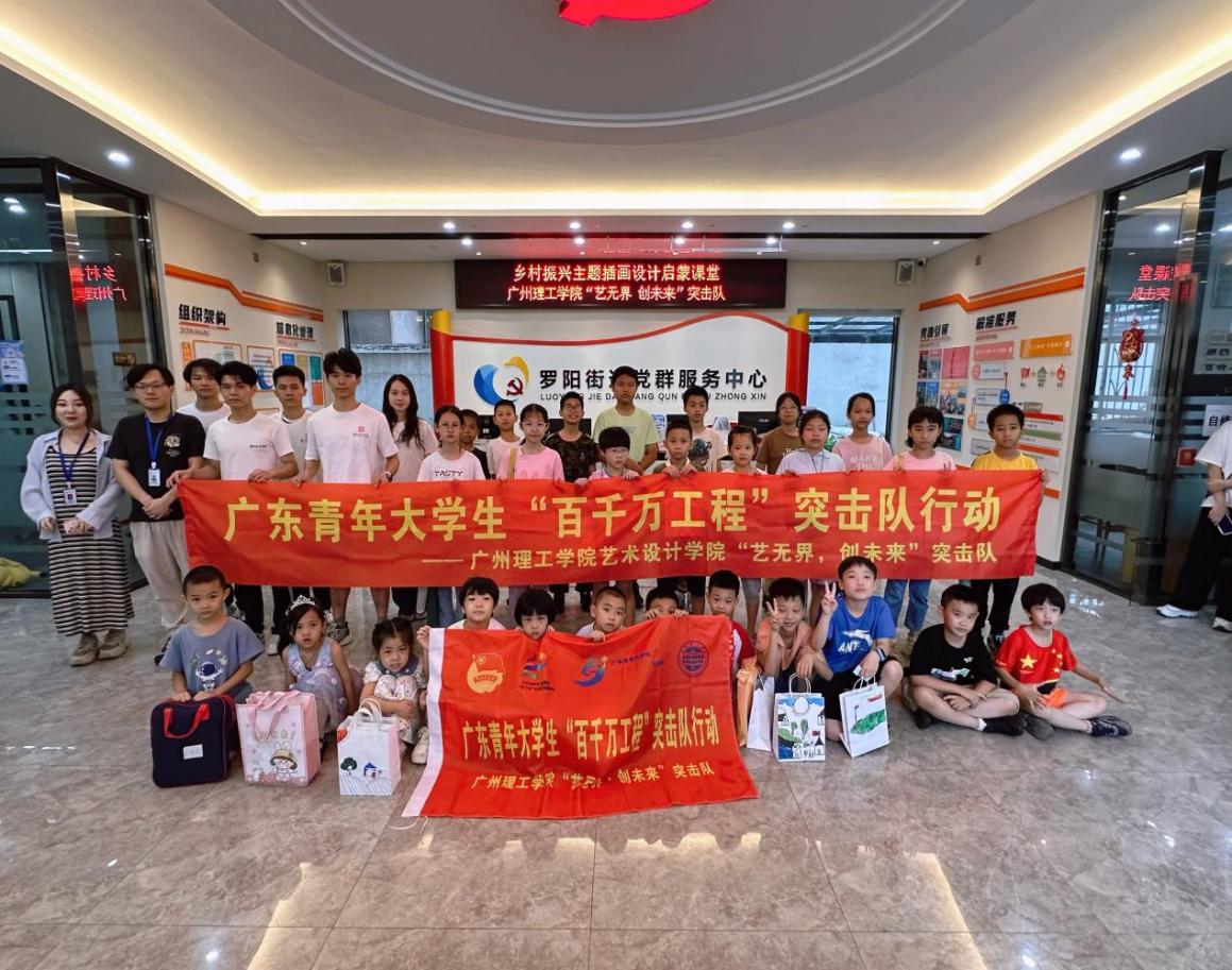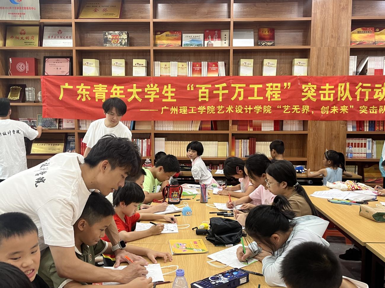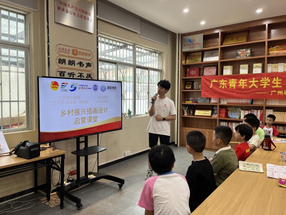 (胡明清)乡村振兴美育是乡村文化振兴的重要组成部分,对于提升乡村居民的审美素养、促进乡村文化繁荣发展具有重要意义。7月10日,广州理工学院“艺无界·创未来”突击队响应广东青年大学生“百千万工程”号召,在胡明清老师和黄禹彰老师的带领下,来到惠州市博罗县罗阳街道西区社区党群服务中心开展“乡村振兴主题插画设计启蒙课堂”支教活动,队员们带着艺术的种子走进基层,用热情和专业知识,为那里的孩子们播种下希望的绿荫。